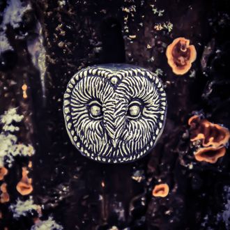 Рельефный значок брошь в виде головы совы сипухи.